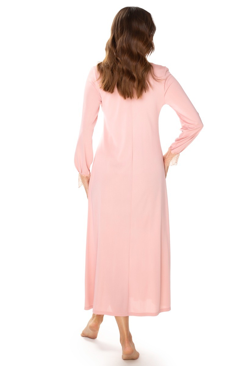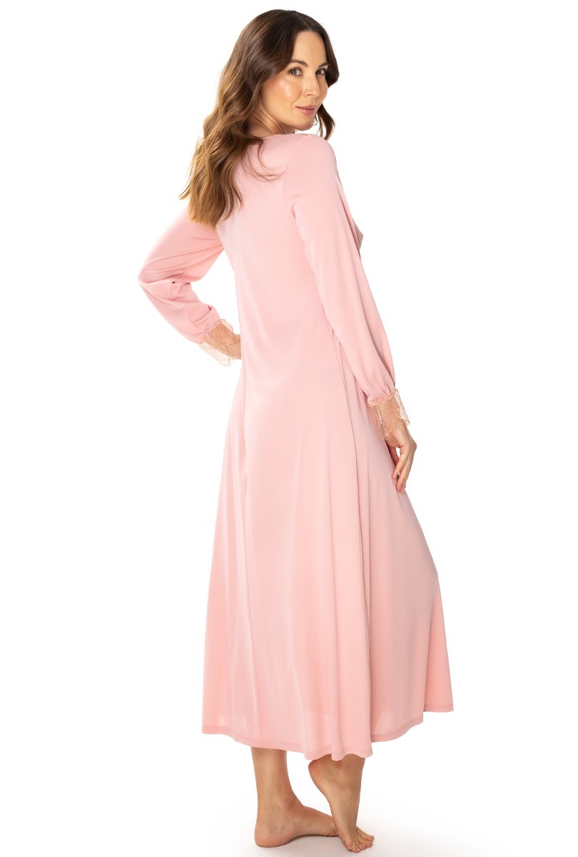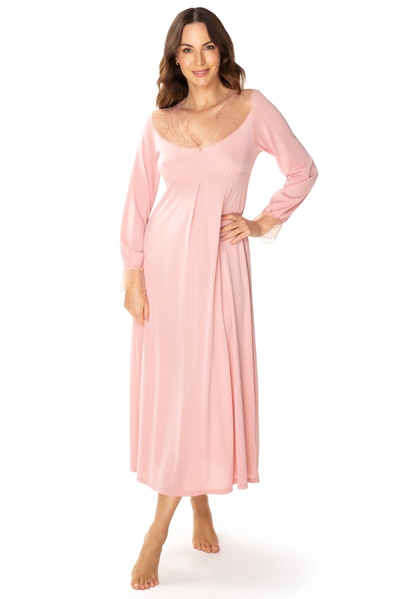 ODESSA to koszula nocna o długości maxi, która subtelnie otula sylwetkę. Klasyczna linia sprawia, że model jest ponadczasowy, a jednocześnie wyjątkowo kobiecy. Długi rękaw idealnie sprawdza się w chłodniejsze wieczory i poranki, zapewniając ciepło i komfort.